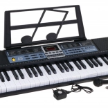 Das Keyboard wird mit Mikrofon, Notenständer und Stromkabel geliefert. Alles, was ein angehender Musiker braucht.