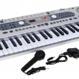 Im Lieferumfang sind ein Mikrofon und ein Netzadapter enthalten. Das Keyboard kann für unterwegs auch mit Batterien betrieben werden.