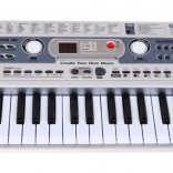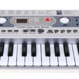 Auf dem oberen Panel finden Sie eine übersichtliche Tastensteuerung mit Digitaldisplay, Einstellungen für Lautstärke und Tempo sowie Funktionen Start/Stop, Record/Play und Program. Kinder können Akkorde in den Modi Single und Finger spielen, Tiergeräusche und Drums ausprobieren oder Lieblingsrhythmen mit dem Mikrofon begleiten.