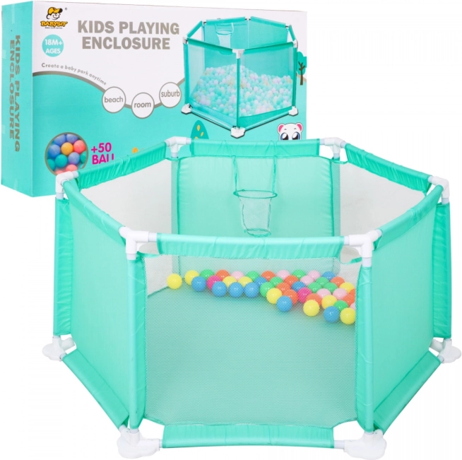 Dieser Laufstall für Kinder ab 18 Monaten bietet großzügigen Platz für sicheres und anregendes Spielen. Transparente Netzwände ermöglichen jederzeit Sicht auf das Kind und halten die Bälle im Inneren. Der stabile Rohrrahmen mit robusten Kunststoffverbindern sorgt für Zuverlässigkeit und Langlebigkeit, abgerundete Kanten erhöhen die Sicherheit.