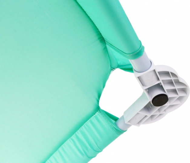 Die Rohrkonstruktion mit fester Fixierung und Kunststoffverbindern gewährleistet Stabilität, werkzeuglose, einfache Montage und eine lange Lebensdauer – auch bei häufigem Auf- und Abbau sowie Transport.