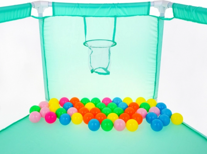 Dank des geringen Gewichts und der einfachen Montage lässt er sich im Handumdrehen vom Wohnzimmer in den Garten oder an den Strand mitnehmen. Im Lieferumfang sind zudem ein Basketballkorb und 50 leichte, bunte Bälle enthalten – ideal für aktive Unterhaltung sowie Training von Koordination und Motorik.