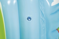 Dank der robusten Kunststoffkonstruktion ist er ideal für Kinderzimmer oder Spielraum. Er lässt sich leicht aufpumpen, ist leicht zu bewegen und benötigt im entleerten Zustand kaum Platz – eine praktische Wahl für den täglichen Spielspaß.