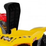 Das Fahrzeug wird durch eine Batterie angetrieben, fährt vorwärts und rückwärts, hat große, stabile Räder und besteht aus sicheren Materialien in leuchtenden Farben.