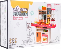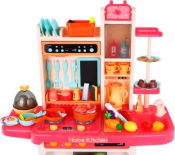 Kinderküche mit Wasserhahn und Dampf-Kochfeld, Audiopanel, 65 Teile – Rosa