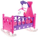 Diese stylische Kinderwiege für Puppen kombiniert 2 Nutzungsmodi – sie kann auf 4 Beinen als Bett stehen oder sanft als Wiege schaukeln. Enthalten ist ein fröhliches Mobile mit Hängeelementen und Soundeffekten, die Fantasie anregen und die Sinne fördern.
