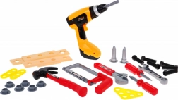 Enthält Schlüssel, Hammer, Säge, 2 Schraubendreher, Schrauben, Dübel, Muttern und Verbindungsteile – alles Nötige für kleine Hausprojekte und zum Üben der Geschicklichkeit.