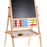 Diese stabile Holztafel verbindet kreatives Zeichnen mit cleverem Lernen. Die weiße Seite ist magnetisch für das Schreiben mit abwischbarem Marker und für das Arbeiten mit Magneten, die schwarze Seite eignet sich für klassisches Zeichnen mit Kreide. Dank der höhenverstellbaren Beine lässt sie sich leicht an Kinder unterschiedlichen Alters anpassen und wächst mit ihnen mit.