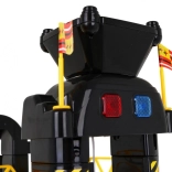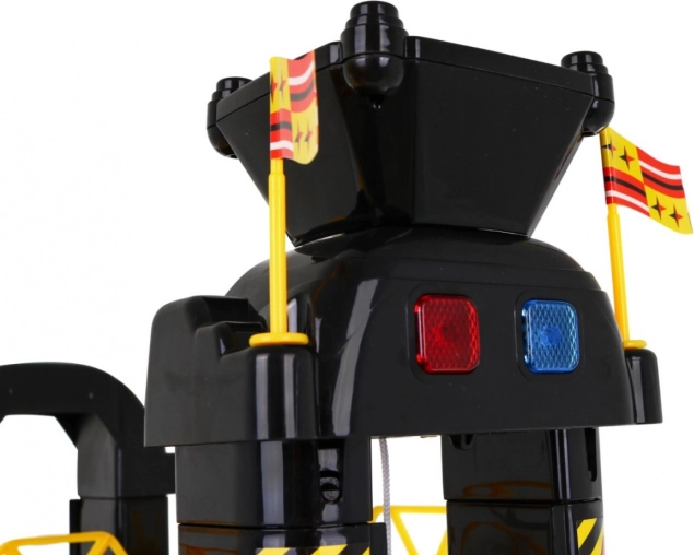 Das Kinderparkhaus bietet eine aufregende Spielfläche mit fünf Ebenen, die über einen Aufzug und Rutschen zugänglich sind. Die unterste Etage verfügt über eine Autowaschanlage, eine Autowerkstatt und eine Tankstelle. Die weiteren Ebenen dienen als Parkbereich für Autos, während ganz oben ein Hubschrauberlandeplatz mit einem beweglichen Aufzug mit Lichteffekten ist, betrieben durch drei AA-Batterien (nicht im Set enthalten).