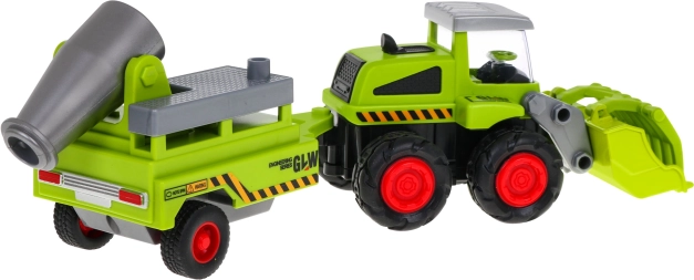 Dieser Landwirtschaftslader mit Anhänger macht Kindern, die Landmaschinen lieben, großen Spaß. Funktionen des Laders mit Anhänger und Sprüher: