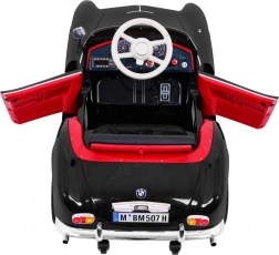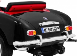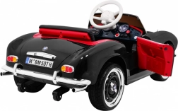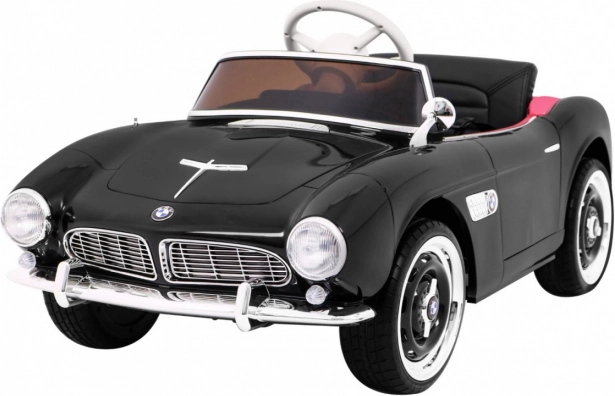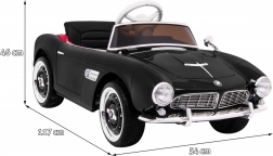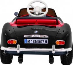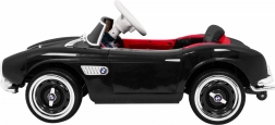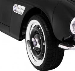 Der schwarze Kinder‑Roadster, inspiriert vom klassischen BMW 507, besticht durch elegante verchromte Details, eine originalgetreue Front und ein präzise gestaltetes Cockpit. Der weiche, belüftete Sitz aus Kunstleder mit Sicherheitsgurt und der sanfte Soft‑Start sorgen bei jeder Fahrt für Komfort und Sicherheit. Praktische öffnende Türen erleichtern das Ein- und Aussteigen.