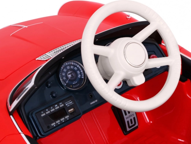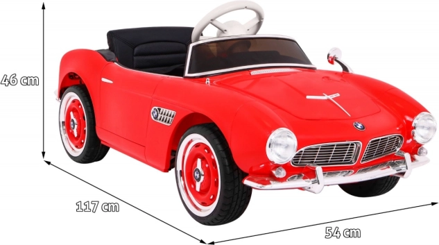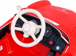 Getreue Replik des klassischen Roadsters mit verchromten Details, realistischen Scheinwerfern und weißem Lenkrad. Das attraktive rote Design regt die Fantasie an und macht beim Fahren Spaß.