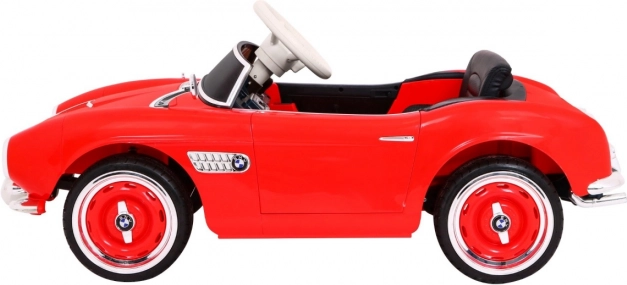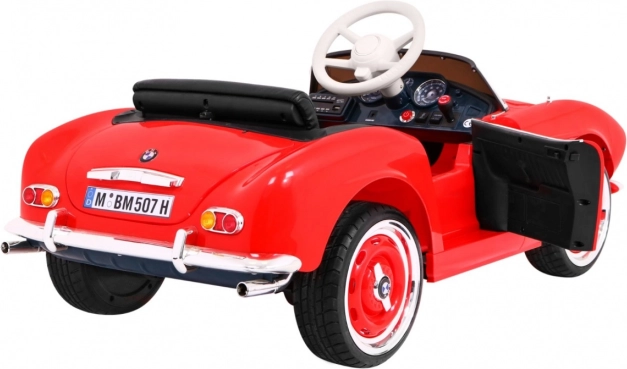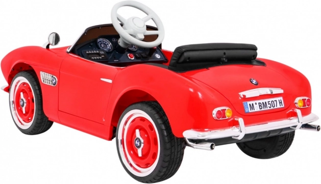 Die Replik des legendären Roadsters BMW 507 besticht durch Retro‑Linien, verchromte Details und realistische Scheinwerfer. Das Cockpit mit beleuchtetem Startknopf und weißem Lenkrad fördert Fantasie und Rollenspiel, während die öffnenden Türen das Einsteigen erleichtern.