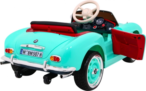 Gönnen Sie Ihrem Kind ein einzigartiges Fahrerlebnis in einer automobilen Ikone – dem BMW 507. Dieses lizenzierte Retro-Cabrio in Grün verbindet elegantes Design mit moderner Ausstattung: leistungsstarke 2× 35 W Motoren, ein zuverlässiger 12 V/7 Ah Akku und komfortable EVA-Räder mit vorderer und hinterer Federung für eine sanfte Fahrt.