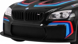 Nehmen Sie kleine Rennfahrerinnen und Rennfahrer mit auf eine Spritztour im großen Stil. Das elektrische Fahrzeug BMW M6 GT3 in schwarzer Ausführung besticht durch sportliches Design mit realistischen Details wie LED-Lichtern, Rennakzenten und öffnenden Türen. Dank weicher EVA-Räder und Federung an Vorder- und Hinterachse meistert es auch unebenen Untergrund mit maximalem Komfort.