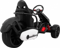 Das elektrische Kinder-Gokart Bolid XR-1 bietet dank der zwei Motoren, dem Stahlrahmen und der hochwertigen Konstruktion ein realistisches Fahrgefühl. Große Reifen aus EVA-Schaum sorgen für leisen Lauf und hervorragende Haftung, während die unabhängige Vorderachsfederung und der hintere Stoßdämpfer eine sanfte Fahrt auch auf Unebenheiten ermöglichen. Zwei Geschwindigkeiten Quick/Slow erlauben die Anpassung an Alter und Fähigkeiten des Kindes.