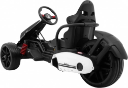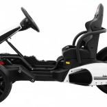Für Komfort und Ergonomie sorgen die verstellbare Lenkradhöhe und der geformte Sportsitz, verstärkt durch eine Metallkonstruktion. Für Spaß ist mit der Hupe im Lenkrad, der robusten Ausführung und einer Tragfähigkeit bis 35 kg gesorgt. Das Gokart ist ideal für den heimischen Hof, Parks und sichere befestigte Flächen.
