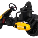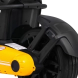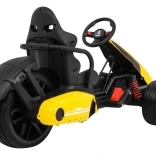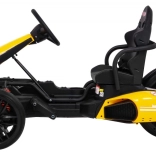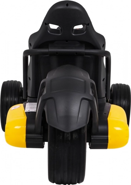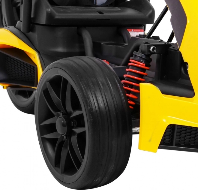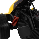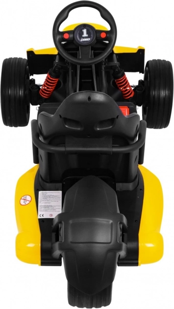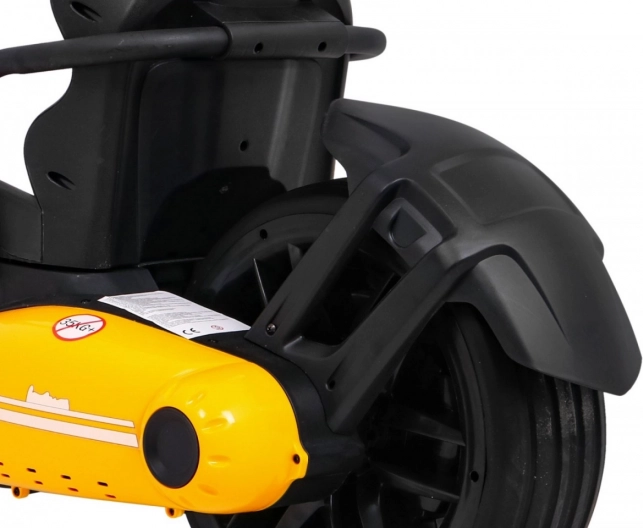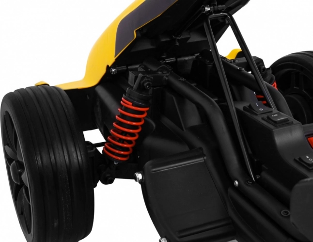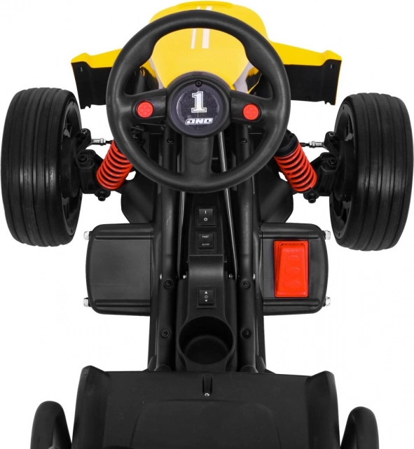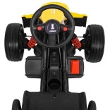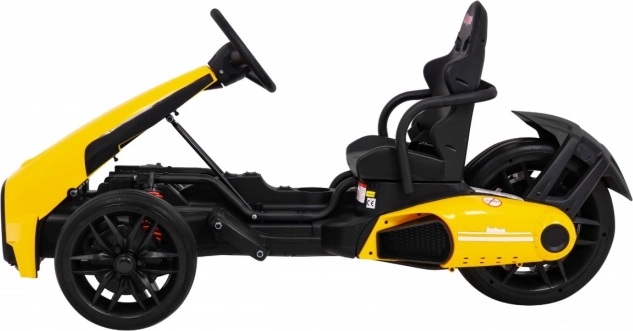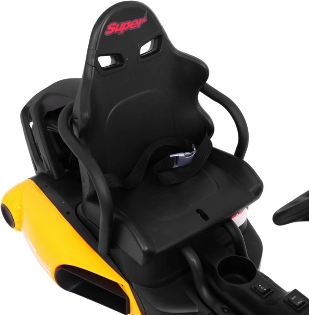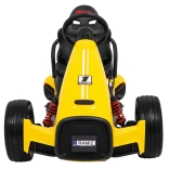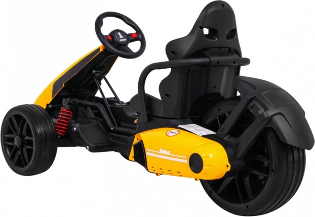 Für Komfort und sichere Kontrolle sorgen die verstellbare Lenkradhöhe, der sportlich profilierte Sitz mit Metallverstärkung sowie die unabhängige Vorderradfederung mit hinteren Stoßdämpfern. Zwei Geschwindigkeiten (Quick/Slow) erlauben die Anpassung an die Erfahrung des Kindes, und die Hupe im Lenkrad sorgt für ein realistisches Erlebnis.
