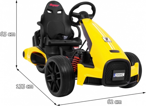 Der RAMIZ XR-1 ist ein robustes elektrisches Kinder-Gokart, das Spaß, Sicherheit und Leistung verbindet. Dank der 2×35 W Motoren und der 12 V/7 Ah Batterie genießen Kinder eine gleichmäßige Fahrt, während EVA-Schaumräder Unebenheiten dämpfen und auf hartem Untergrund leise laufen. Der Stahlrahmen und hochwertige kugelgelagerte Räder verleihen der Konstruktion eine lange Lebensdauer.