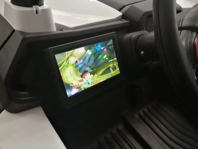 Das integrierte Touchpanel spielt FLV/AVI-Videos und MP3-Musik ab, USB, MicroSD und ein Mini-Klinken-Ausgang für Kopfhörer sind vorhanden.