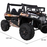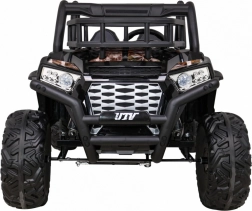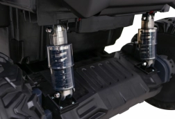 Erleben Sie großartige Offroad-Abenteuer mit dem elektrischen UTV-Fahrzeug. Zwei leistungsstarke Motoren 2×200 W, ein 24V-Akku und verstellbare Stoßdämpfer (vorne und hinten) sorgen für eine sanfte und stabile Fahrt selbst auf unebenem Untergrund. Weiche EVA-Räder 34×15 cm dämpfen Vibrationen hervorragend und bieten maximalen Komfort.