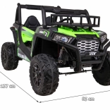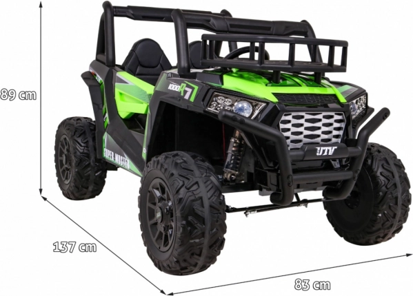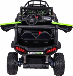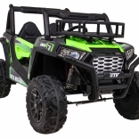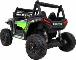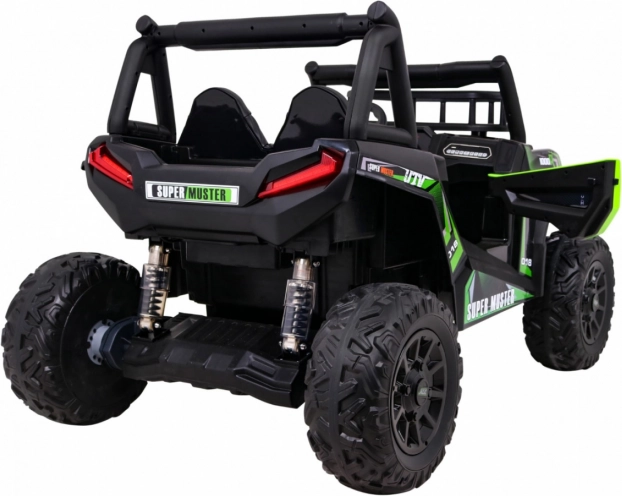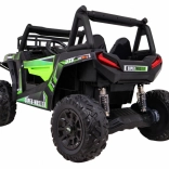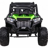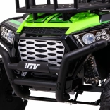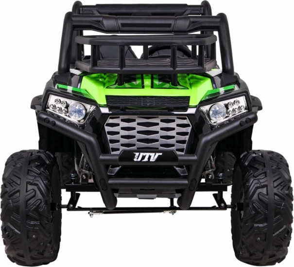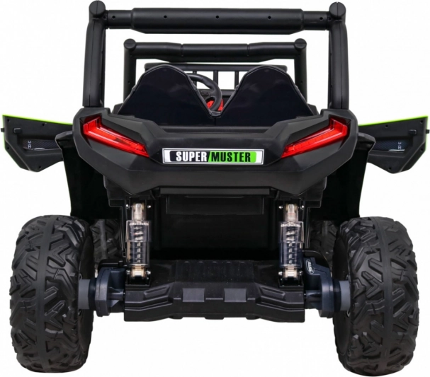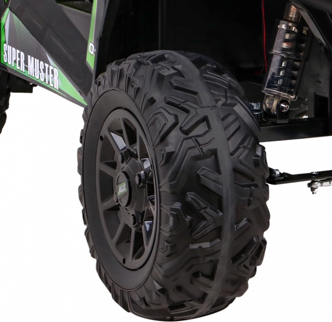 Das geländegängige Kinder-UTV in attraktiver grüner Farbe ist für Abenteuer gebaut. Zwei starke 2×200-W-Motoren in Verbindung mit einem 24-V-7-Ah-Akku liefern genug Kraft auch auf unebenem Untergrund. EVA-Schaumräder 34×15 cm dämpfen Vibrationen, und zusammen mit der Federung 2× vorn und 2× hinten bieten sie eine komfortable und stabile Fahrt.