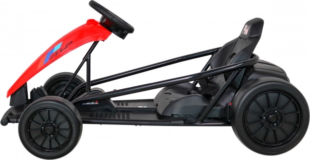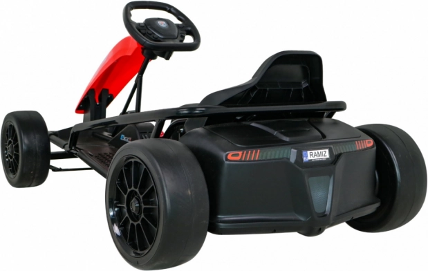 Die einzigartige schwarz-rote Farbkombination macht diesen Gokart nicht nur funktional, sondern auch für Kinder besonders attraktiv. Sicherheit und Komfort werden durch den ergonomisch geformten Sportsitz gewährleistet, der auch bei längeren Fahrten eine entspannte und bequeme Sitzposition unterstützt.