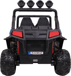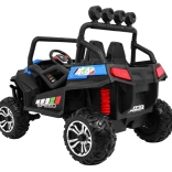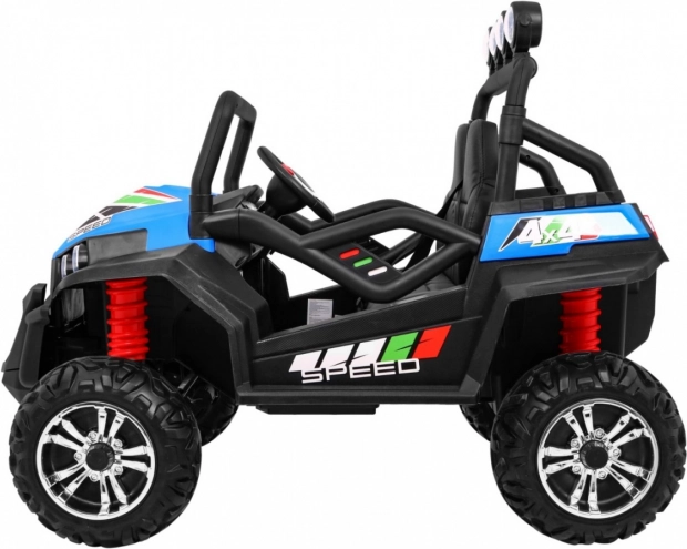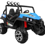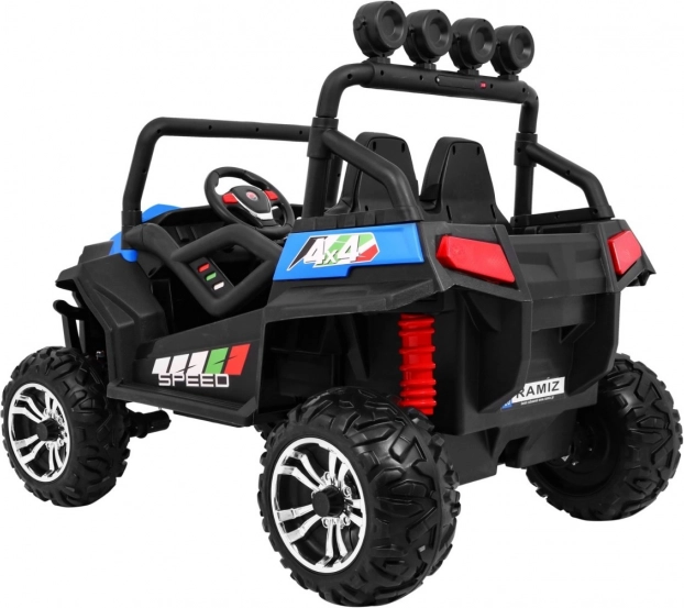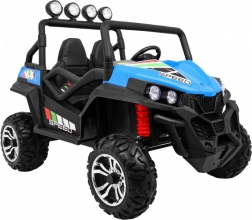 Das elektrische Kinderauto GRAND BUGGY 4x4 ist für kleine Rennfahrer konzipiert, die Abenteuer lieben. Dieses elegante blau-schwarze Fahrzeug im Offroad-Design bietet Sicherheit und Komfort mit belüfteten Sitzen aus veganem Leder und einstellbaren Gurten.
