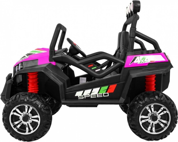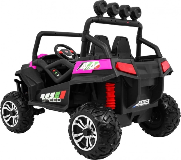 Der Kinder Geländewagen Grand Buggy 4x4 ist so gebaut, dass er anspruchsvolle Geländebedingungen meistert. Dank der vier starken Motoren und der großen EVA-Schaumräder bietet er hervorragende Traktion und Stabilität auf verschiedenen Oberflächen.