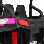 Die Sicherheit des Kindes wird durch verstellbare Gurte und einen belüfteten Kunstledersitz gewährleistet, der den Fahrkomfort erhöht. Zusätzlich ist das Fahrzeug mit LED-Scheinwerfern ausgestattet, die die Sichtbarkeit bei Nachtfahrten verbessern.