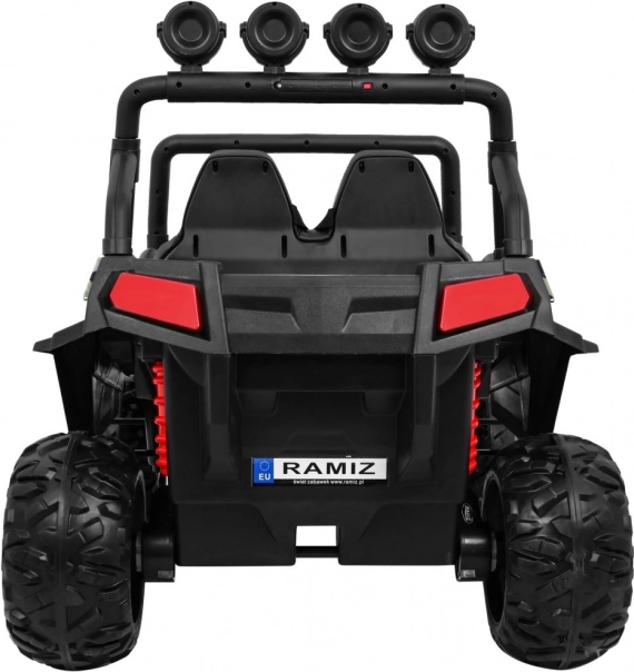 Das elektrische Auto ist mit großen Geländereifen und einem robusten Rahmen ausgestattet, was Sicherheit und Widerstandsfähigkeit beim Fahren im Gelände gewährleistet.