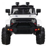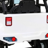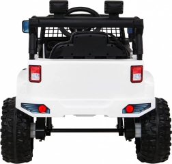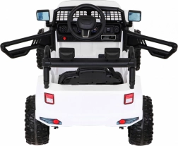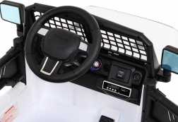 Die Elternkontrolle gewährleistet eine 2,4 GHz Fernbedienung mit drei Geschwindigkeiten und STOP-Taste. Kleine Fahrer freuen sich über LED-Lichter, ein realistisches Lenkrad mit Hupe und Melodien sowie ein Audio-Panel mit USB und AUX für Lieblingssongs.