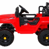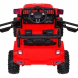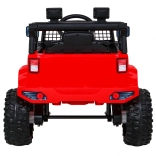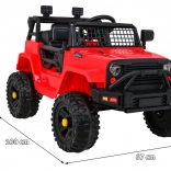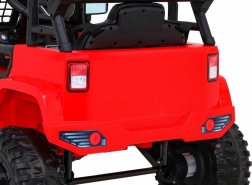 Für Sicherheit sorgen Sicherheitsgurte, die 2,4-GHz-Fernbedienung für Eltern mit Not-STOP-Taste und eine hochwertige Konstruktion. Das Audio-Panel mit USB und AUX ermöglicht das Abspielen von Lieblingsliedern; Tasten mit Melodien und einer Hupe befinden sich direkt am Lenkrad. Öffnende Türen und der Sitz aus Öko-Leder erfreuen Kinder und Eltern gleichermaßen.