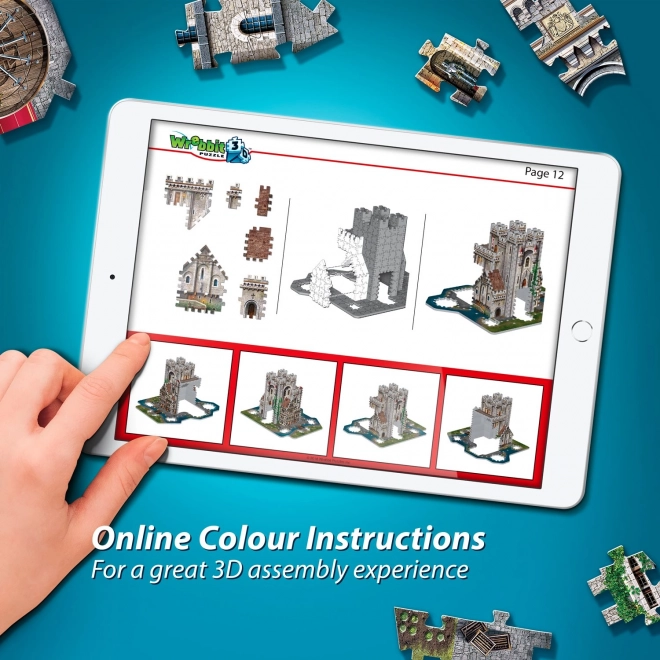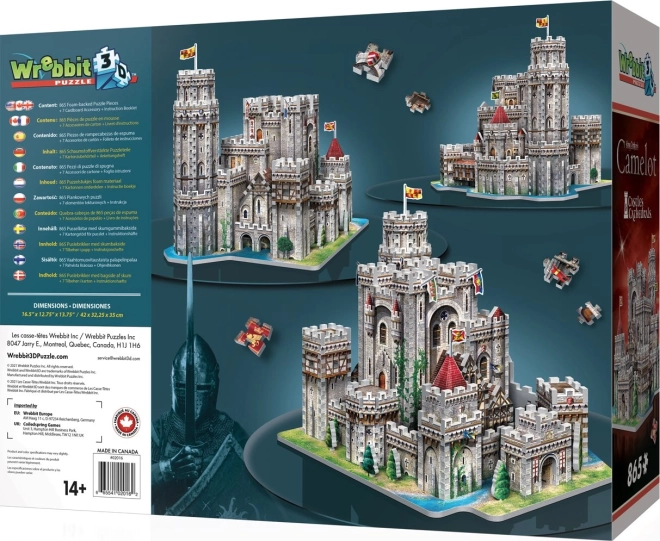Erschaffen Sie zu Hause ein imposantes Modell der Burg Camelot mit Türmen, Zinnen und Fahnen. Dank Spezialmaterial und präziser Formgebung der Teile hält das Modell fest ohne Klebstoff oder Werkzeuge. Der Zusammenbau erfolgt anhand übersichtlicher Referenzbilder und einer schwarz-weißen, illustrierten Anleitung.
