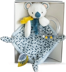 Dieses wunderschöne Geschenkset enthält den Plüsch-Koala Yoca, der der ideale Begleiter für Babys ab der Geburt ist. Es bietet ein Gefühl von Sicherheit und Komfort dank seines weichen Materials. Eine Rassel mit Perlen im Inneren des Rings sorgt für Stimulation und Unterhaltung für die Kleinsten.