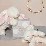 Der bezaubernde Hase in Cremefarbe mit rosa Ohren ist ein perfektes Geschenk, das jedes Kind erfreuen wird. Verpackt in einer wunderschönen Geschenkbox, die Modernität und Luxus evoziert, ist dieses Spielzeug ideal als Geschenk zur Geburt oder zu anderen wichtigen Anlässen.