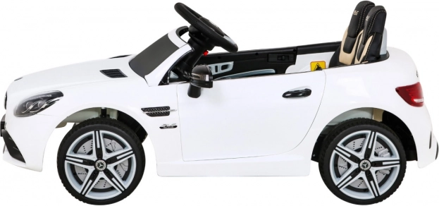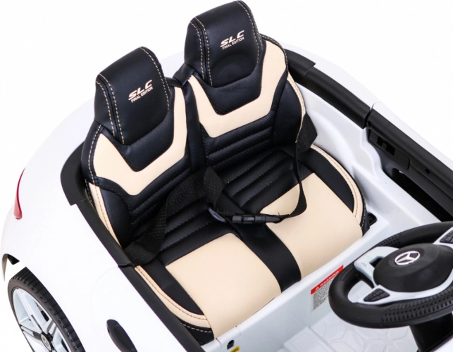 Dieses elegante Kinderfahrzeug basiert auf der beliebten Mercedes-Benz SLC 300 Final Edition und überzeugt mit präzisen Karosseriedetails, zu öffnenden Türen mit Verriegelung und einem bequemen Sitz aus belüftetem Kunstleder mit Sicherheitsgurten. Dank des Doppelantriebs 2×30 W und der Batterien 2×6 V / 4,5 Ah ist die Fahrt zu Hause und draußen sanft und spaßig.