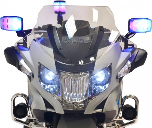 Das Motorrad ist von echten Polizeimaschinen inspiriert und bietet Details wie LED-Leuchten und authentische Polizeisirenen.