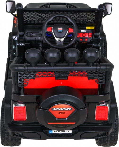 Das Auto ist mit Sicherheitsgurten und einer Fernbedienung ausgestattet, die es den Eltern ermöglicht, die Geschwindigkeit zu kontrollieren und das Auto bei Bedarf zu stoppen.