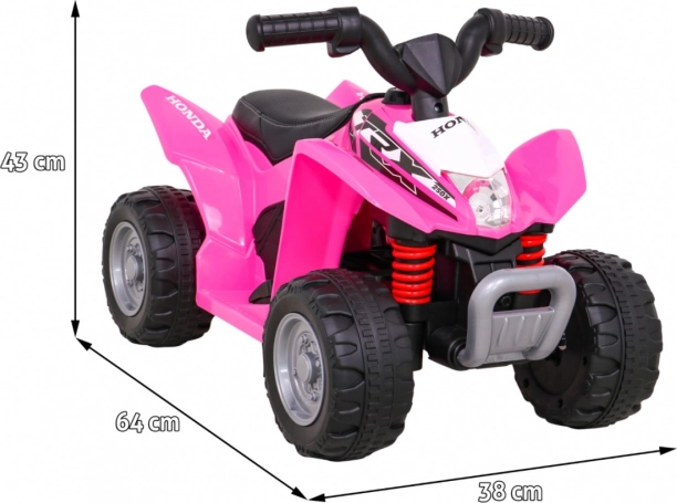 Das lizenzierte Quad HONDA 250X TRX wurde für eine sichere und freudige Fahrt kleiner Kinder entwickelt. Kompakte Abmessungen (64 × 38 × 43 cm) und ein geringes Gewicht erleichtern Eltern das Handling und geben Kindern beim Fahren Sicherheit und Stabilität. Vordere LED-Scheinwerfer und realistische Details erhöhen die Attraktivität und fördern Motorik und Gleichgewicht.