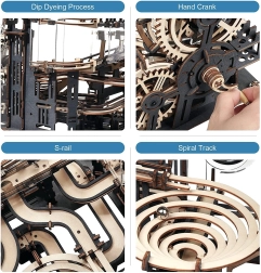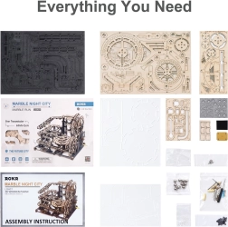 ROKR Marble Night City ist ein beeindruckendes 3D-Modell einer Kugelbahn, das Spaß und Bildung kombiniert. Dieses Modell besteht aus 294 präzise geschnittenen Teilen, die eine komplexe Bahn mit verschiedenen Hindernissen und einer handbetriebenen Mechanik durch Drehen der Kurbel bilden. Eine vollständige Anleitung, die Sie durch den Montageprozess führt, ist im Lieferumfang enthalten.
