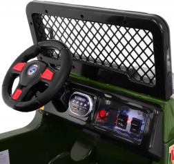 Eltern schätzen die 2,4-GHz-Fernbedienung mit 3 Geschwindigkeiten und der Not-Stop-Taste. Kleine Fahrer freuen sich über das Audio-Panel mit MP3, USB, SD und AUX, die beleuchtete Starttaste sowie das Multifunktionslenkrad mit Melodien und Hupe. Die Sicherheit wird durch Sicherheitsgurte und eine gut sichtbare Ladezustandsanzeige erhöht.