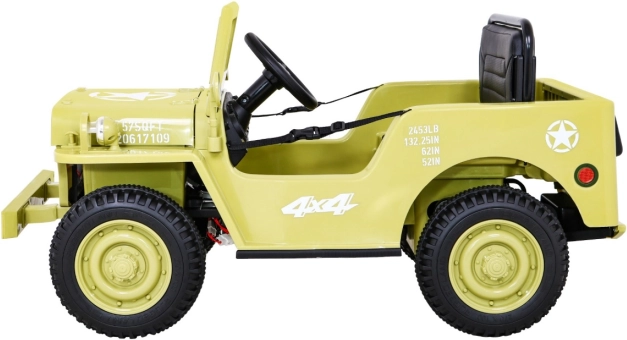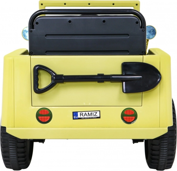 Schenken Sie Kindern Offroad-Abenteuer mit einem realistischen Retro-Jeep in Beige. Der leistungsstarke 4x4-Antrieb mit vier 35-W-Motoren und 12-V-Batterie sorgt für eine gleichmäßige Fahrt, während EVA-Schaumräder und Federung an Vorder- und Hinterachse den Komfort und die Stabilität auf unebenem Untergrund erhöhen. Für Sicherheit sorgen die 2,4-GHz-Fernbedienung mit Not-Stopp-Taste und die Sanftanlauf-Funktion.