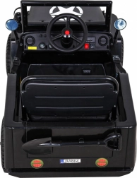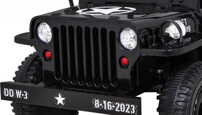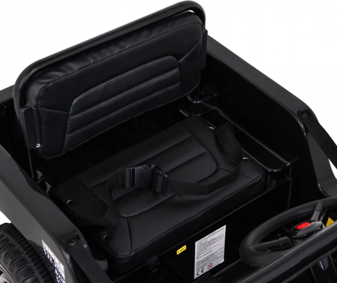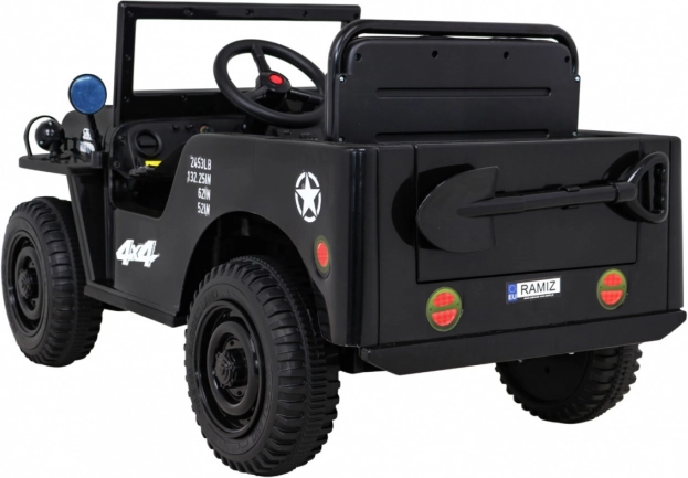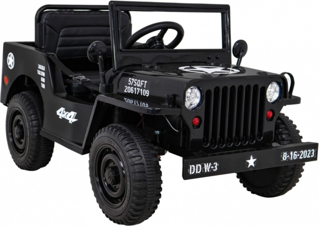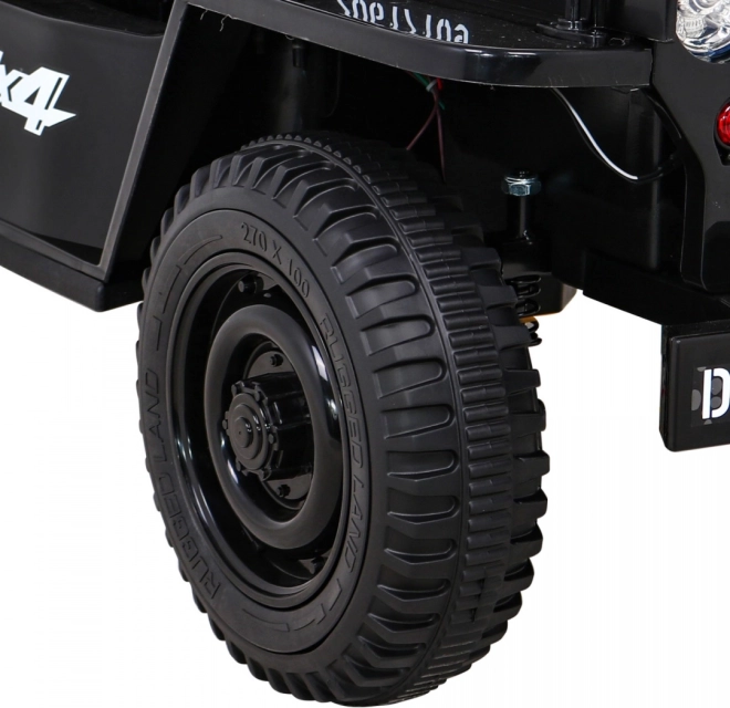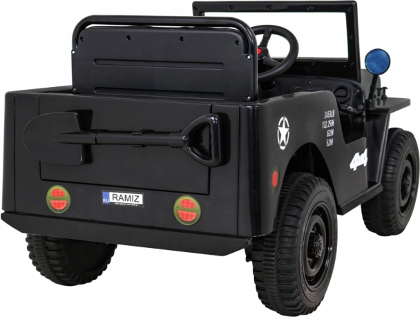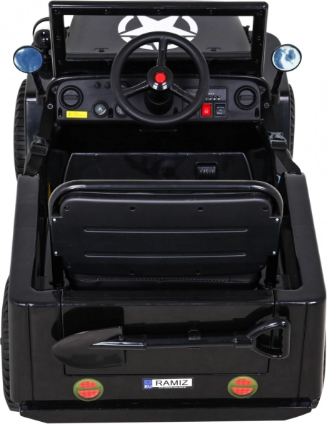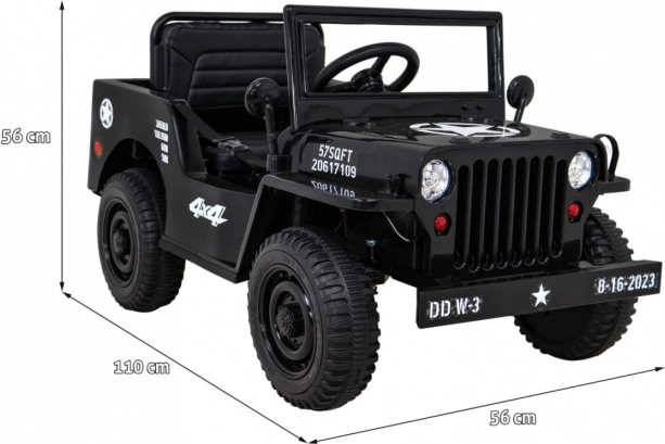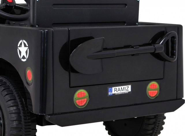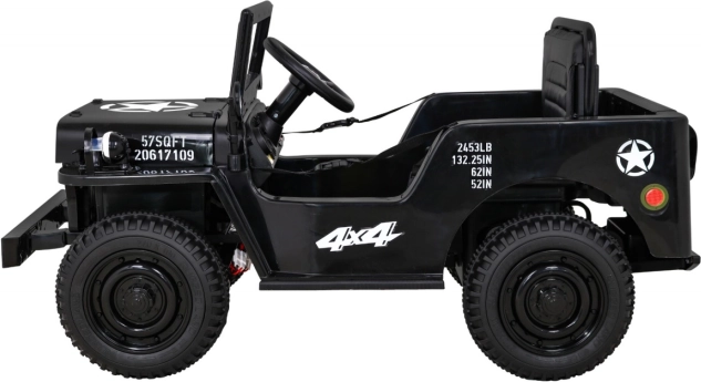 Dieses schwarze elektrische Kinderauto im Stil eines Militär-Jeeps begeistert kleine Abenteurer mit authentischem Look, funktionalen Scheinwerfern und einem bequemen Sitz aus belüftetem Eco-Leder. Dank 4x4-Antrieb, weichen EVA-Rädern 26 × 9 cm und Federung vorne wie hinten meistert es Unebenheiten und heimisches Gelände. Sanftes Anfahren und die Wahl der Fahrtrichtung vorwärts/rückwärts erhöhen Komfort und Sicherheit.