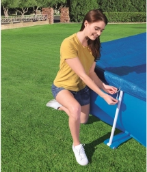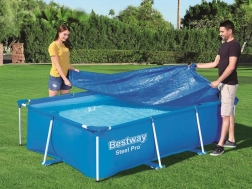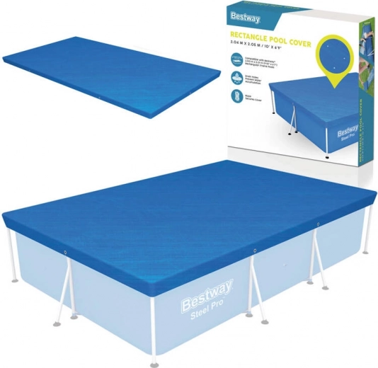Die Abdeckung ist so konzipiert, dass sie Ihren rechteckigen Pool mit Rahmen und den Maßen 300 x 201 cm schützt. Spezielle Ablauflöcher in der Abdeckung verhindern die Ansammlung von Wasser. Dank integrierter Riemen befestigen Sie die Abdeckung einfach und sicher an der Poolkonstruktion.