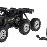Das Fahrzeug ist zudem mit einem Allradantrieb ausgestattet, der robusten Antrieb und Präzision in der Bewegung sicherstellt. Die Fernbedienung ermöglicht einfaches Manövrieren mit einer Reichweite von bis zu 27 MHz.