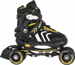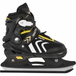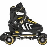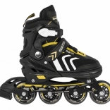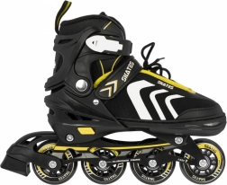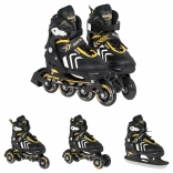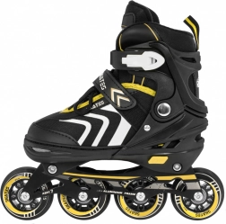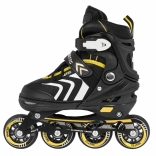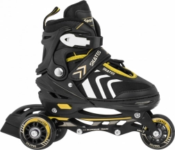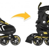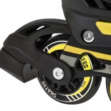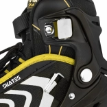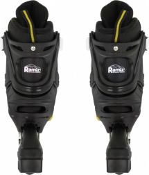 Die Aluminiumschiene und PU-Rollen 64×24 mm mit Härte 85A in Kombination mit ABEC-7-Lagern ermöglichen ein ruhiges, sicheres Gleiten. Auf dem Eis überzeugen die rostfreien Kufen, die langlebig und pflegeleicht sind. Der rechte Skate ist mit einer Bremse für sicheres Anhalten ausgestattet.