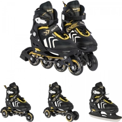 Dieses 4-in-1-Kinderset passt sich jeder Saison und jedem Können an. Im Handumdrehen verwandeln Sie es von Inlineskates in Rollschuhe oder Eislaufschuhe. Die fünfstufige Größenverstellung (34–38) mit einer Innenlänge von 20,5–23,5 cm wird von einer halbstarren Konstruktion begleitet, die dem Knöchel Halt gibt und für Fahrkomfort sorgt.