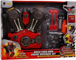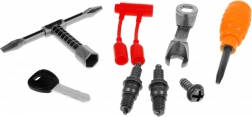 Das Set beinhaltet verschiedene Plastikwerkzeuge, die es Kindern ermöglichen, echte Reparaturen und Anpassungen am Motor auszuprobieren.