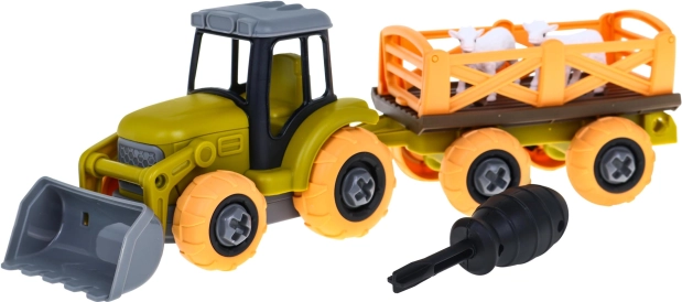 Dieser solide verarbeitete Traktor mit abnehmbarem Anhänger ist ideal für Kinder ab drei Jahren. Er wird in bereits montiertem Zustand geliefert, und sein Hauptvorteil besteht darin, dass er mit dem beiliegenden Schraubendreher zerlegt und wieder zusammengebaut werden kann. Benötigt keine Batterien, ist somit sicher und einfach zu verwenden. Die Details des Spielzeugs umfassen: